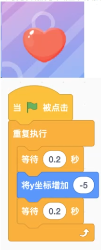 要想实现爱心不断上下跳动的效果,下面程序缺少哪个积木块?