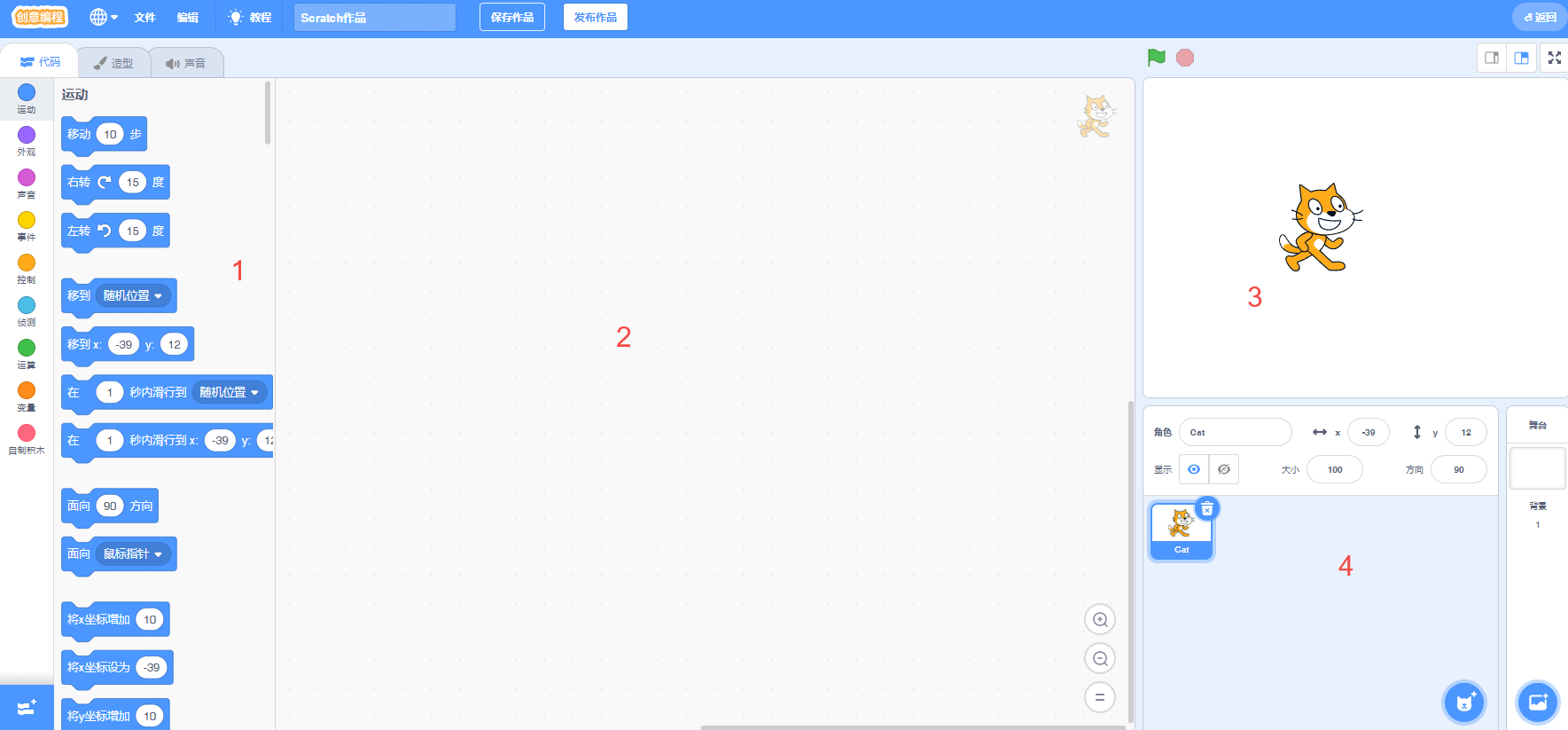 scratch编译器中,看舞台运行效果在哪个区域?( )