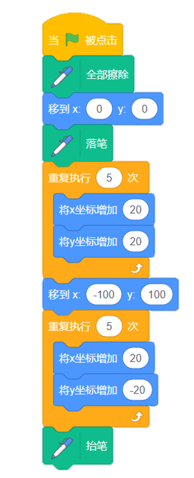 运下列行程序后,舞台上呈现如下图案。( )