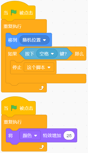 点击小绿旗,并按下空格键,下列对程序效果表述最完善的是( )。