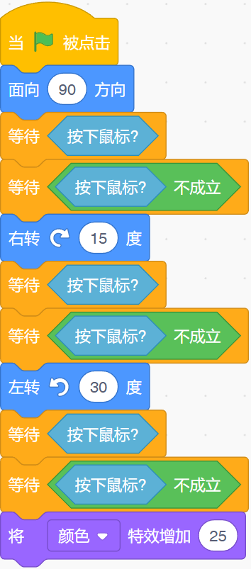 运行下列程序后,角色最终的方向数字为15。( )