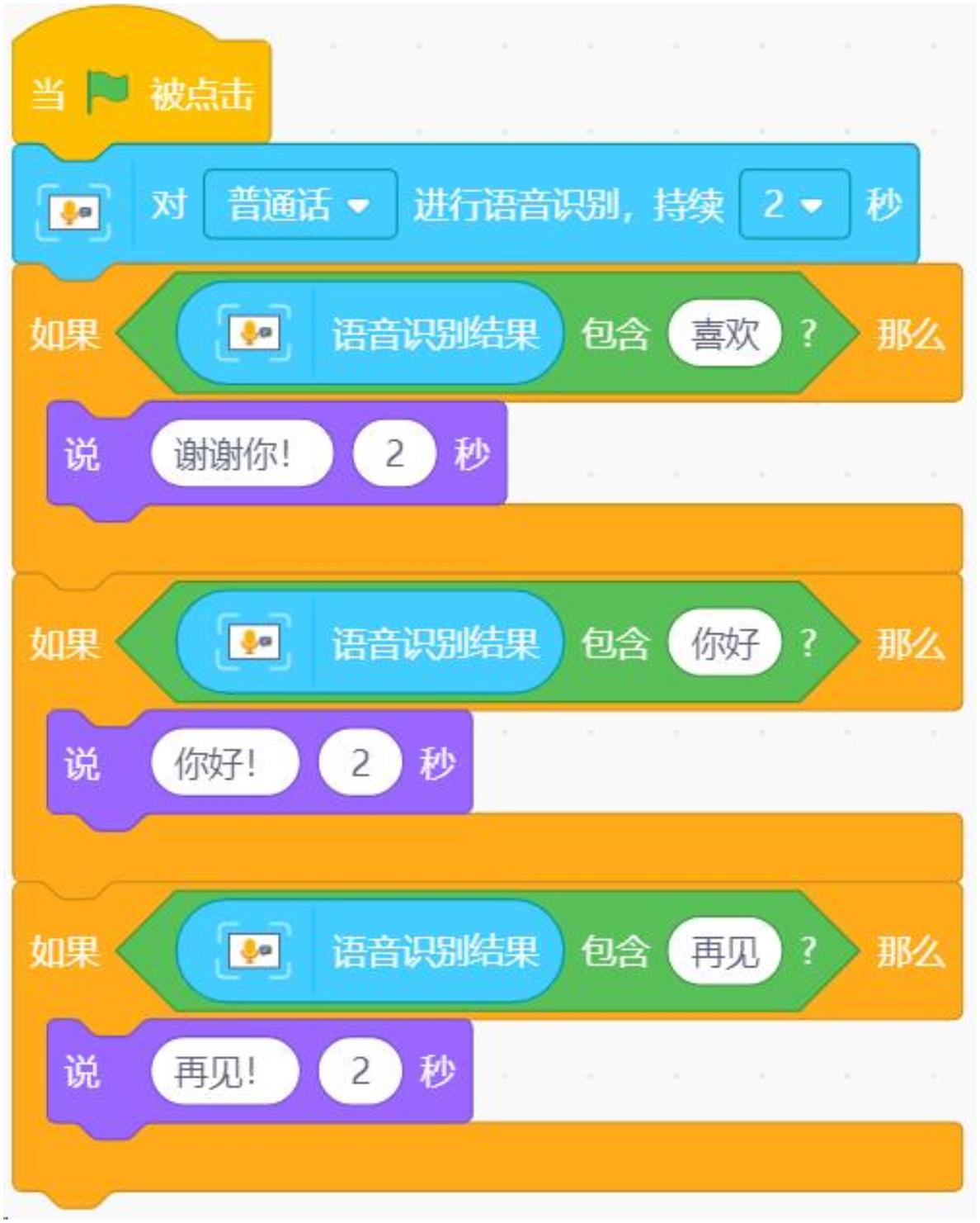 运行程序,用普通话对电脑说“我喜欢吃苹果”,得到的回复是