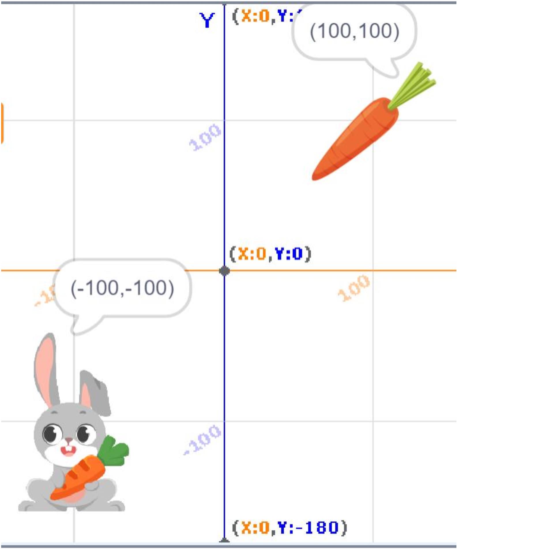 如图所示,兔子的坐标是(-100,-100),萝卜的坐标是(100,100),一个方格边长100步,给兔子编程下列哪组程序不能让兔子拿到萝卜?