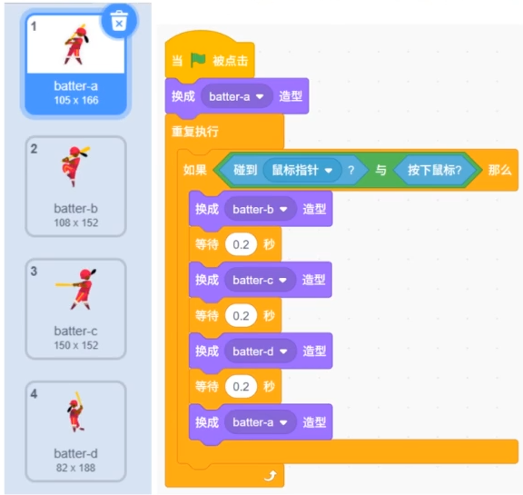 小女孩有四个造型,运行下列程序后,用鼠标点击一次小女孩,会切换成哪个造型?