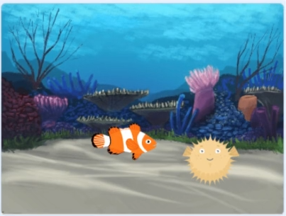 下列哪个程序可以让小鱼捉到小河豚时说:“抓到你了!”,没抓到的时候说:“嘘…”?