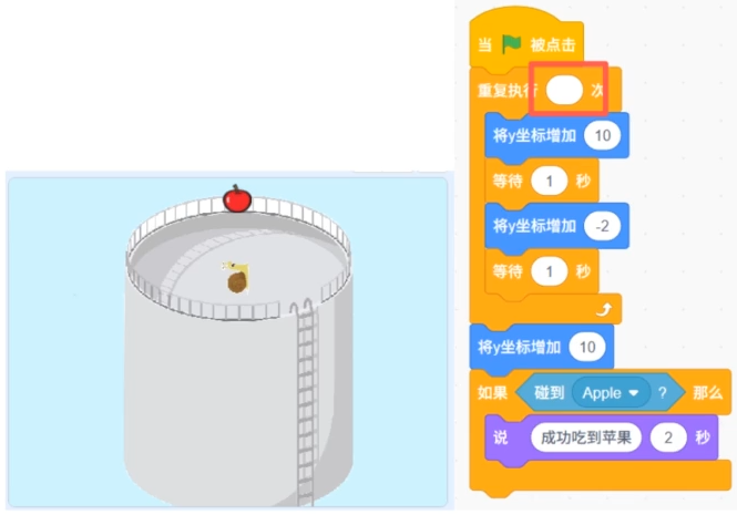 井深90步,小蜗牛初始位置在井底,每往上爬10步,往下滑2步,要想使小牛爬出井口吃到苹果,红处应该填入几?