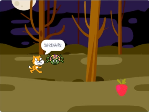 (4)当小猫碰到蜘蛛时说出“游戏失败”2秒,程序结束;