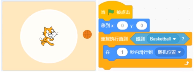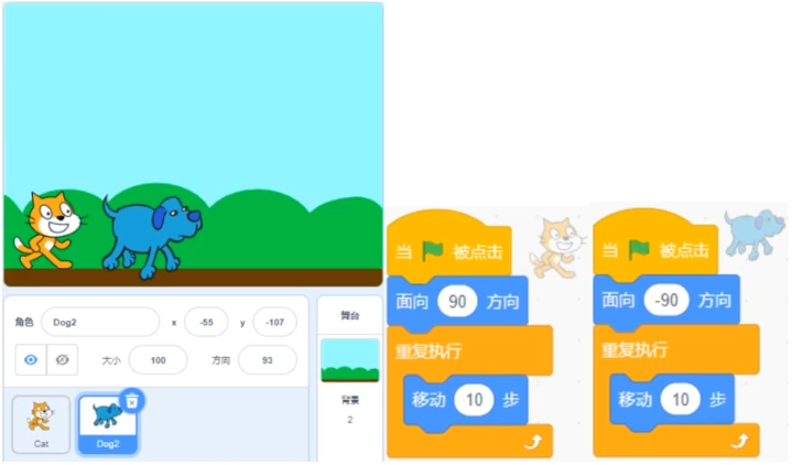 小猫和小狗初始位置如下图所示,点击绿旗后会发生什么?