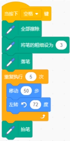 (1)隐藏小猫,笔的颜色为黄色,笔的粗细为5;