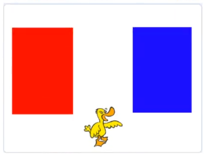 小鸭子碰到红色区域就变小,碰到蓝色区域就变大,下列程序正确的是?