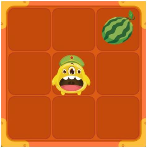 小怪想要面向西瓜方向移动,需要用的积木是